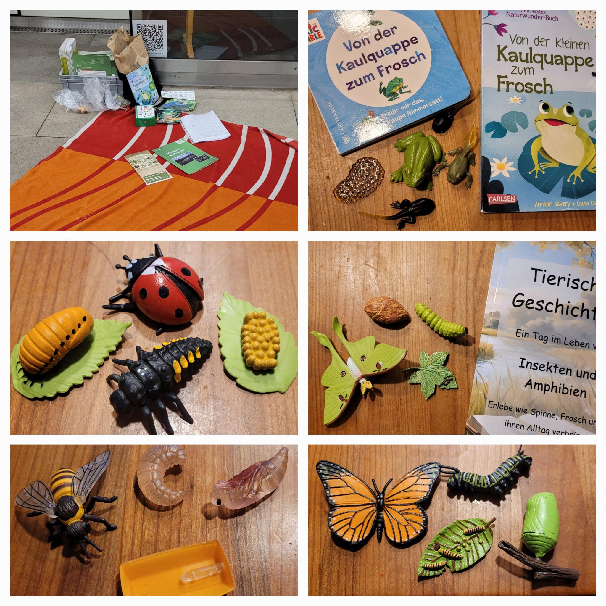 Neben den Amphibien lernten die Kinder auch andere kleine Wunder der Natur kennen: den Lebenszyklus des Marienkäfers, des Schmetterlings und der Biene. Mit Bildern und Spielen konnten sie nachvollziehen, wie sich aus Ei, Larve, Puppe und schließlich einem fertigen Insekt faszinierende Lebewesen entwickeln. Besonders spannend war die Erkenntnis, dass auch Brennnesseln und Laubhaufen wichtig sind: Viele Schmetterlingsraupen fressen Brennnesseln, und im Laub überwintern zahlreiche Insekten. So verstanden die Kinder schnell, dass ein Garten nicht „sauber“ sein muss, um schön zu sein – im Gegenteil: Ein bisschen Wildnis hilft der Natur!